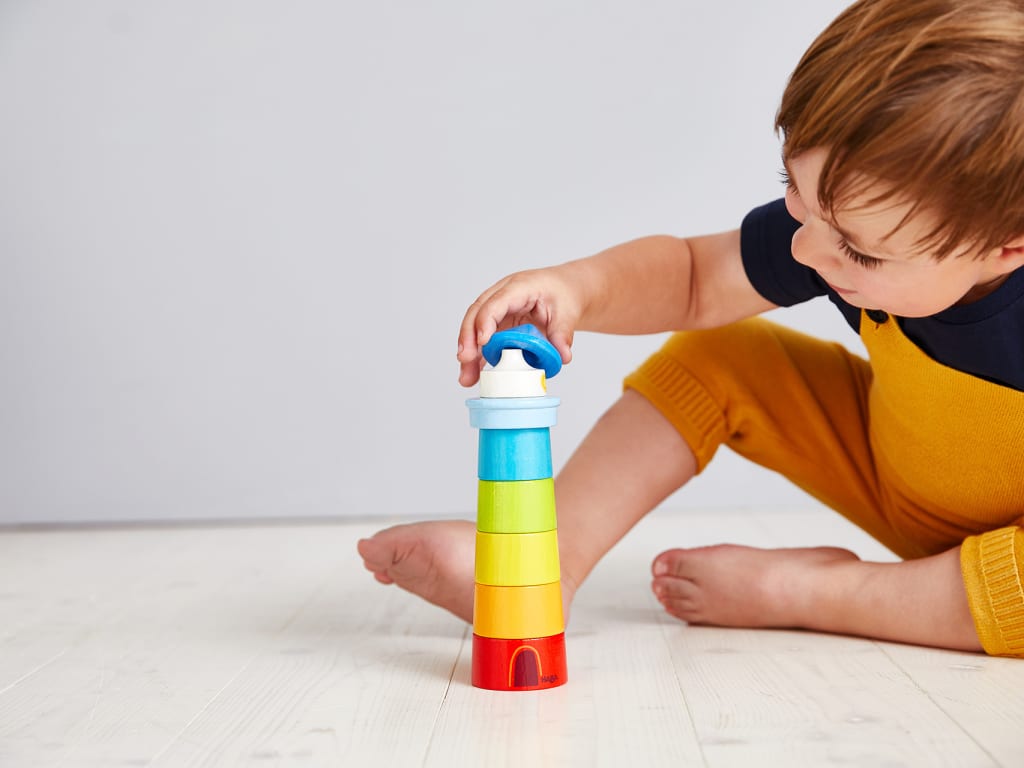 Schon 1-Jährige können mit dem HABA-Stapelspiel Leuchtturm loslegen und die Welt entdecken. Die Holzsteine schulen die Feinmotorik eurer Kleinen und helfen ihnen dabei, die Welt der Farben kennenzulernen. Der Leuchtturm ergibt in einer Variante einen Regenbogen und zaubert mit diesen kunterbunten Farben garantiert ein Lächeln aufs Gesicht eures Kleinkinds.