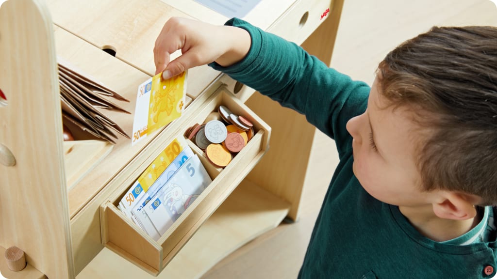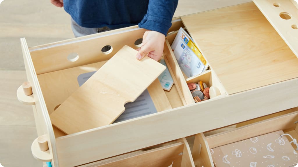 Küche, Kaufladen oder Werkstatt? Die Schublade passt sich flexibel der Spielsituation an.
