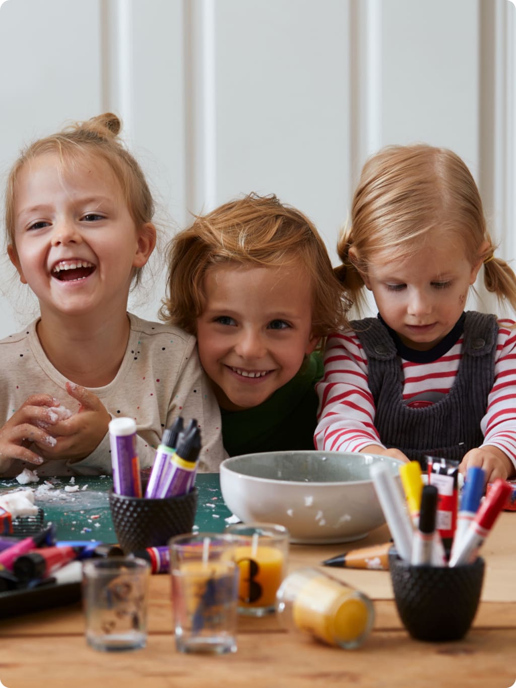 Bastel-Freund:innen inspirieren: Den kleinen Kreativen könnt ihr mit passenden Bastelsets oder Material für bestimmte Techniken, wie Filzen oder Fensterbilder, viel Freude bereiten.